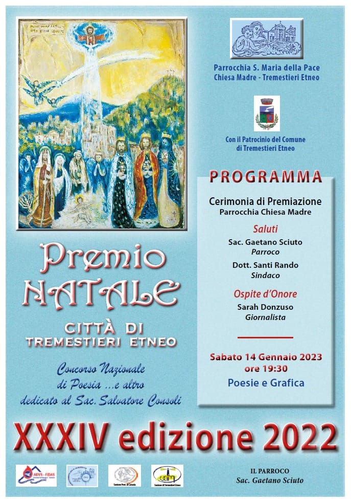 ORE 19.30 Cerimonia di Premiazione della XXXIV Edizione del Premio Natale – Città di Tremestieri Etneo Cerimonia di Premiazione della XXXIV Edizione del Premio Natale – Città di Tremestieri Etneo