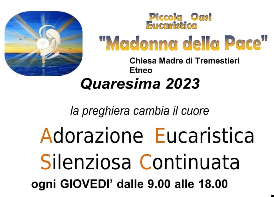 OGNI GIOVEDÌ DI QUARESIMA Adorazione Eucaristica Silenziosa Continuata