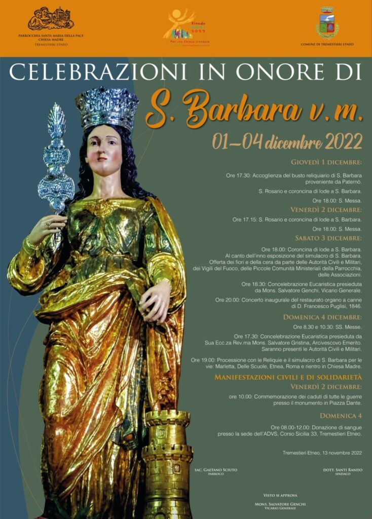 Martedì 13 Settembre 2022Convegno Diocesano Mompilieri ore 19:00 Mercoledì 14 Settembre 2022Convegno Diocesano Mompilieri ore 19:00Anniversario Ordinazione Diaconale Don Lazzaro Martedì 20 Settembre 2022Triduo S.Pio Mercoledì 21 Settembre 2022Triduo S.Pio Giovedì 22 Settembre 2022Triduo S.Pio Venerdi 23 Settembre 2022 – San Pio da PietralcinaConsiglio Pastorale Allargato ore 20:00 – 21:30 Domenica 25 Settembre 2022 –
