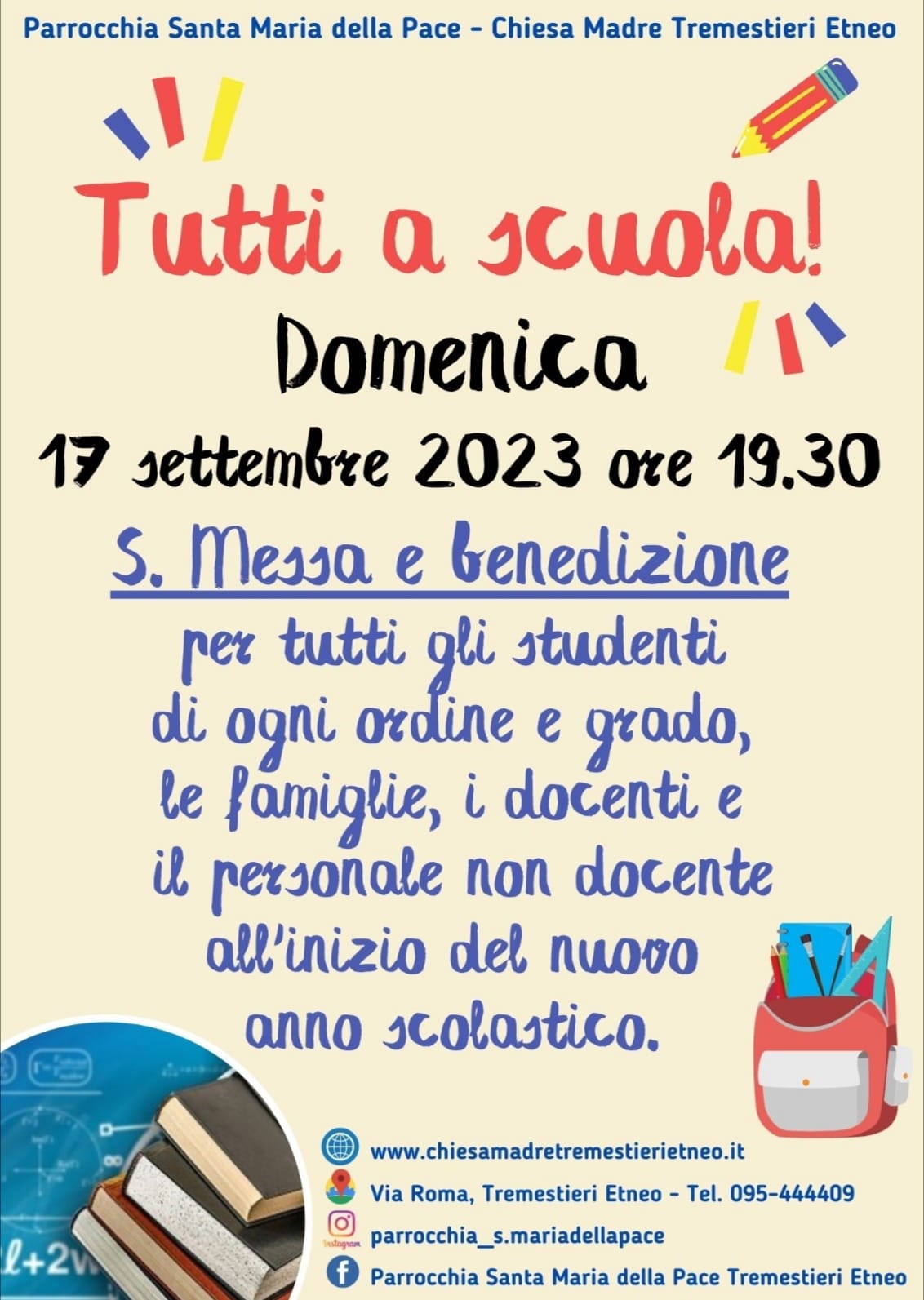 Il ritorno a scuola è alle porte! Incontriamoci domenica 17 settembre alle 19.30 per la S. Messa e iniziare così il nuovo anno scolastico con la benedizione del Signore